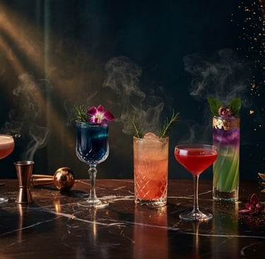 Bespoke Design & Artistry - Up to 15 guests, 4 hours of custom mixology from $1,500. Signature cocktails tailored to your event's theme and vision. Your story, crafted into every glass.